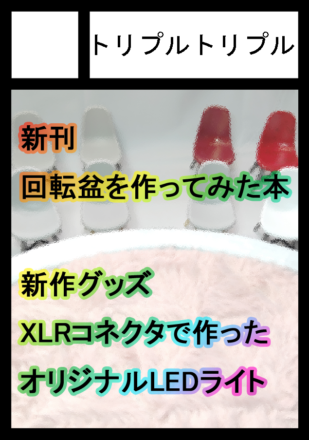 また、劇場のステージ照明の制御で用いられるXLRコネクタでLEDライトを作りました。こちらも頒布を予定しています。